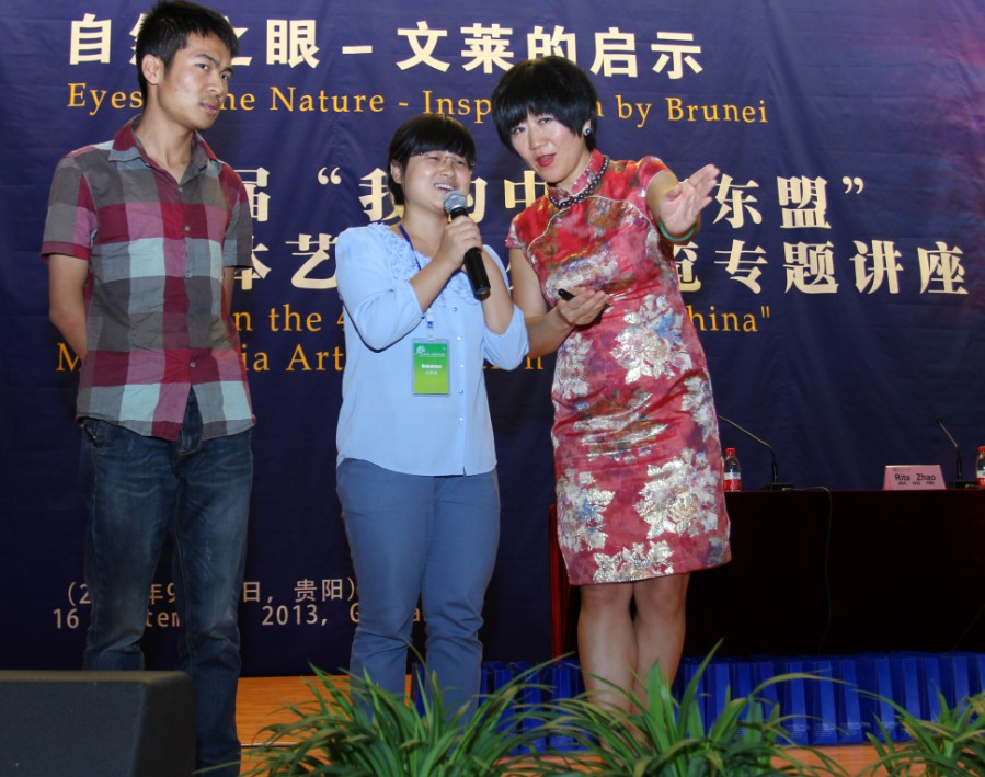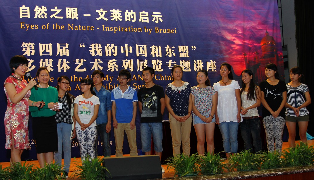 赵丽塔结合自己所拍摄的200幅精美的摄影作品和五幅大型油画作品为例,详细地向大家介绍了和平之乡文莱的传统、历史、宗教、艺术、人文和如画的水下世界,让师生领略了文莱的各种风情,整场讲座气氛轻松而活跃。她还以问答互动的形式介绍了东盟的基础知识。