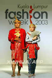 吉隆坡时装周上的身着传统服饰的模特。